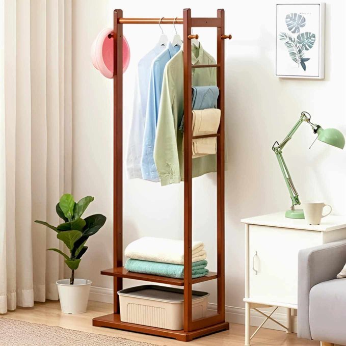 আপনার জামাকাপড়, তোয়ালে, ব্যাগ বা হ্যাট – সব কিছু সুন্দরভাবে গুছিয়ে রাখার জন্য নিয়ে এলাম মাল্টিফাংশনাল কাঠের হ্যাঙ্গার স্ট্যান্ড।ঘরের অগোছালো জামাকাপড় এখন থাকবে গোছানো ও স্টাইলিশভাবে!